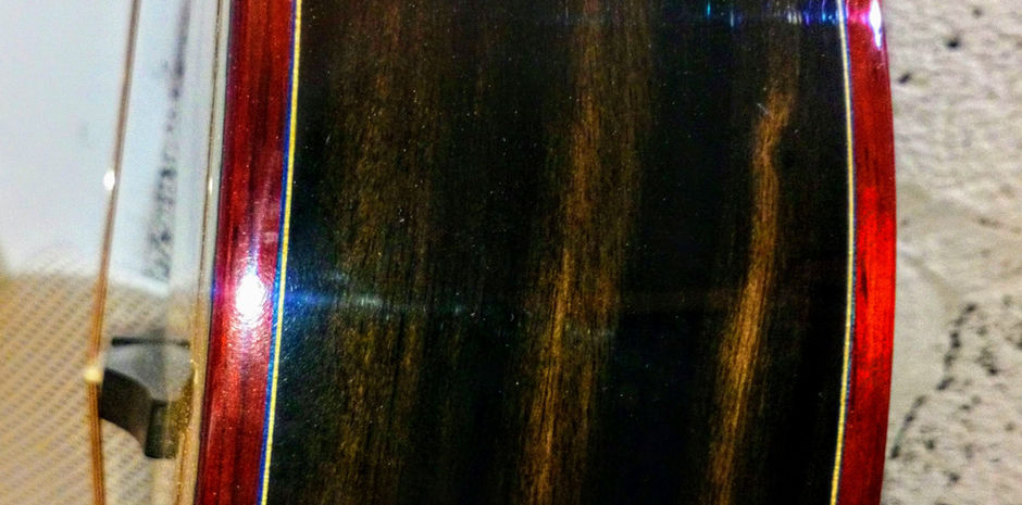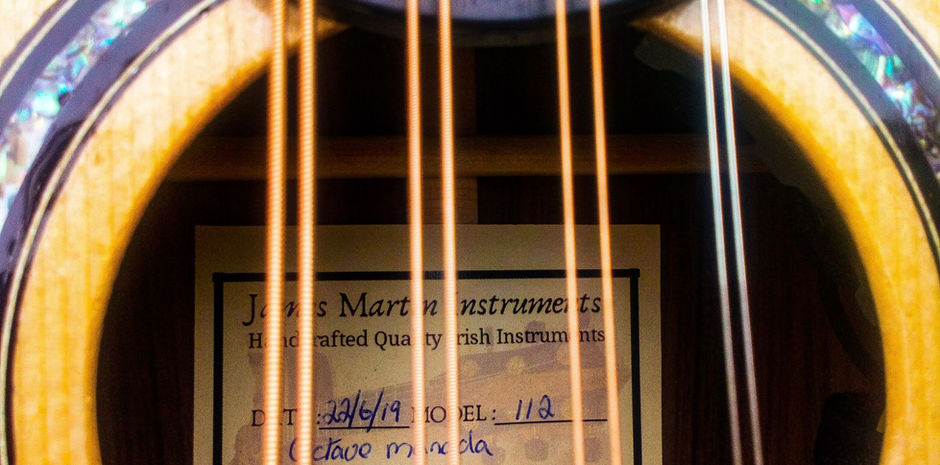 The Spalted Beech in this guitar was sourced locally in Piltown Co. Kilkenny. It was a monster of a tree that blew down in a storm a few years ago. I was lucky enough to secure the purchase of this fine tree. African Blackwood is sourced from a village in Co. Waterford. Bog Oak is from the bogs near Tybroughney Castle by the River Suir.