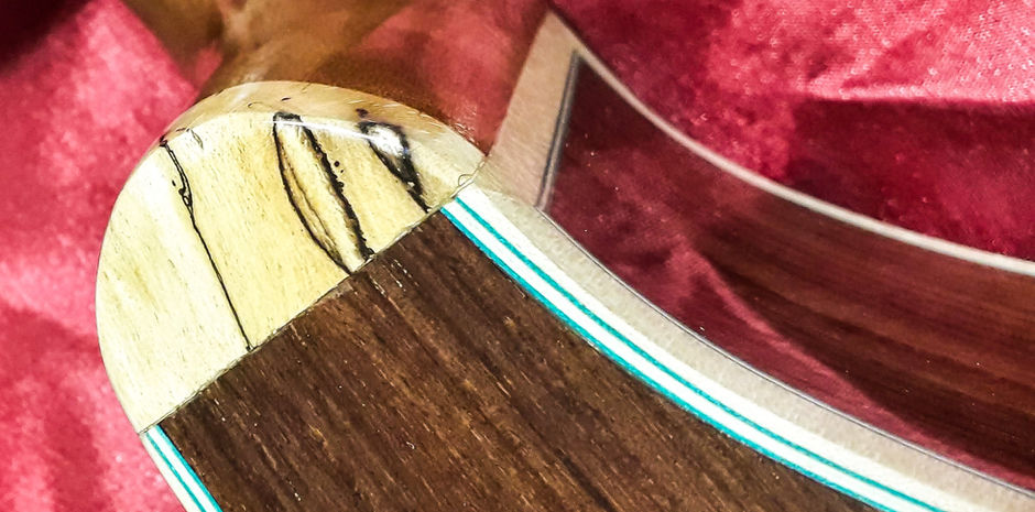~ Local Spalted Beech heel cap, truss rod cover and tail end wedge.
